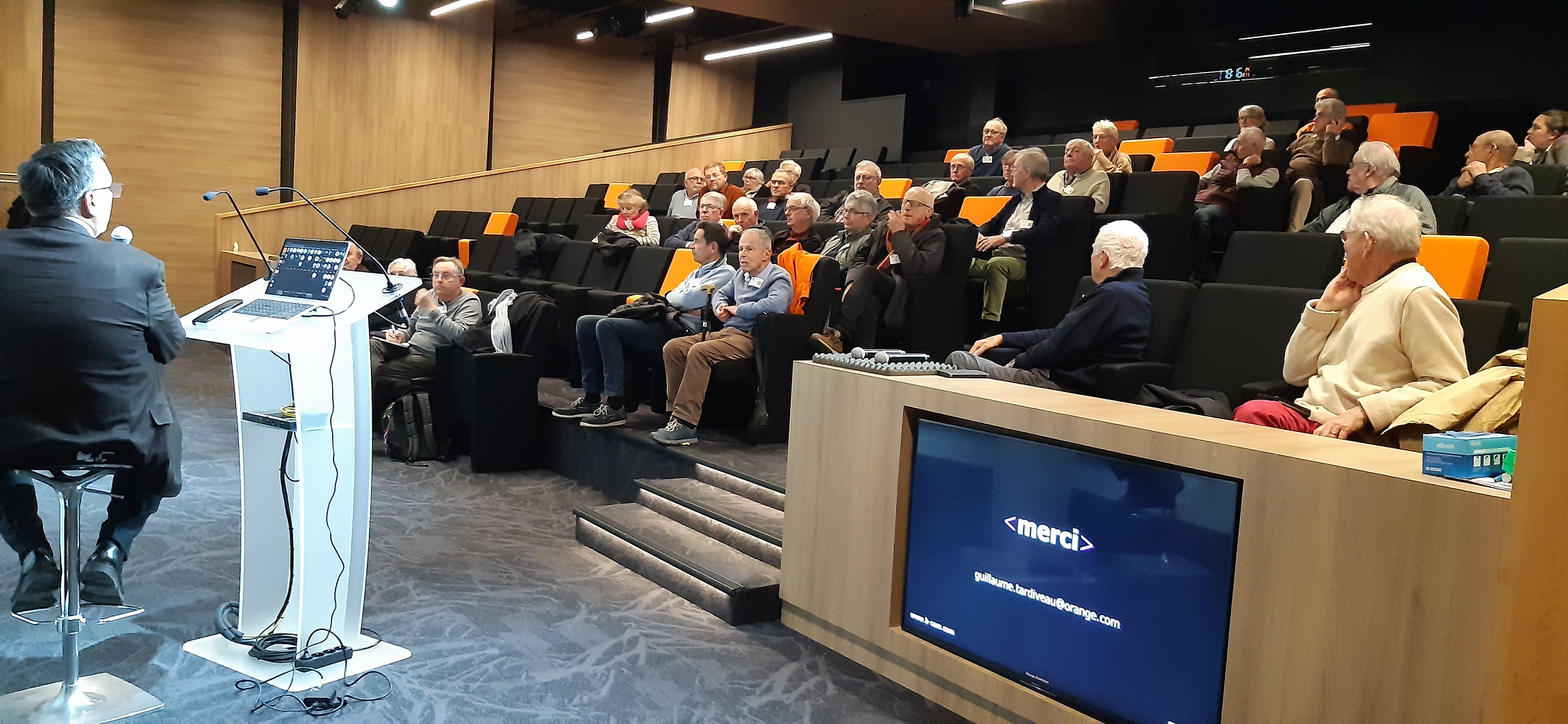 Le conférencier a tout d’abord présenté l’institut de Recherche technologique B<>Com: les chiffres caractéristiques, les évolutions depuis sa création en 2012, les partenariats mis en oeuvre; il a donné quelques exemples de projets en cours, notamment celui relatif à la vidéo volumétrique (évolution de la vidéo immersive).